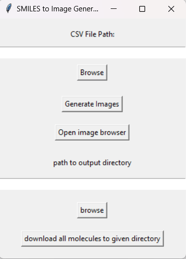ChemBuilder is a Python-based application designed to convert SMILEs codes into images of their corresponding molecular structures from an input .csv file. The application currently uses a tkinter interface which features in-app visualization as well as a mass download feature that allows the end user to download all generated images in a single click.